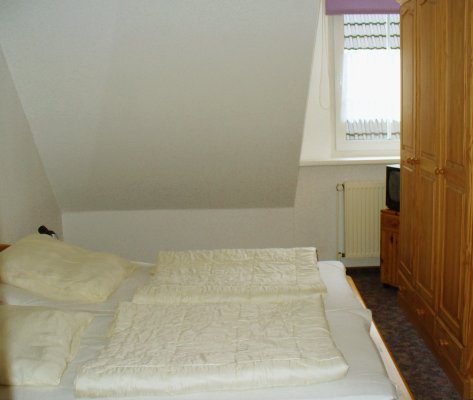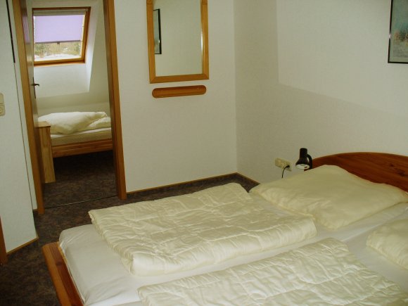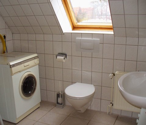Es sind insgesamt 3 Schlafzimmer vorhanden. 1 Zimmer mit Doppelbett, 1 Schlafzimmer mit 2 einzeln stehenden Betten und 1 Zimmer mit einem Bett, so dass die Kinder auf jedem Fall ihr „eigenes Reich“ zum Spielen haben. Die Schlafräume liegen im oberen Geschoss, wo sich ebenfalls das Bad befindet. Hier steht auch eine Waschmaschine, für die Wäsche zwischendurch.