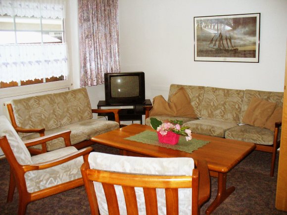 Vom Wohnraum aus gehen Sie auf eine kleine Terrasse, hier können Sie die Sonne am Nachmittag genießen, wenn Sie nicht gerade am Strand im eigenen Strandkorb liegen. Zu Fuß erreichen Sie den Strand in ca. 5 Minuten, vorbei am Freibad Steinmarne, das in den Sommermonaten geöffnet hat. Hier können Sie auch bei Ebbe im Meerwasser baden.